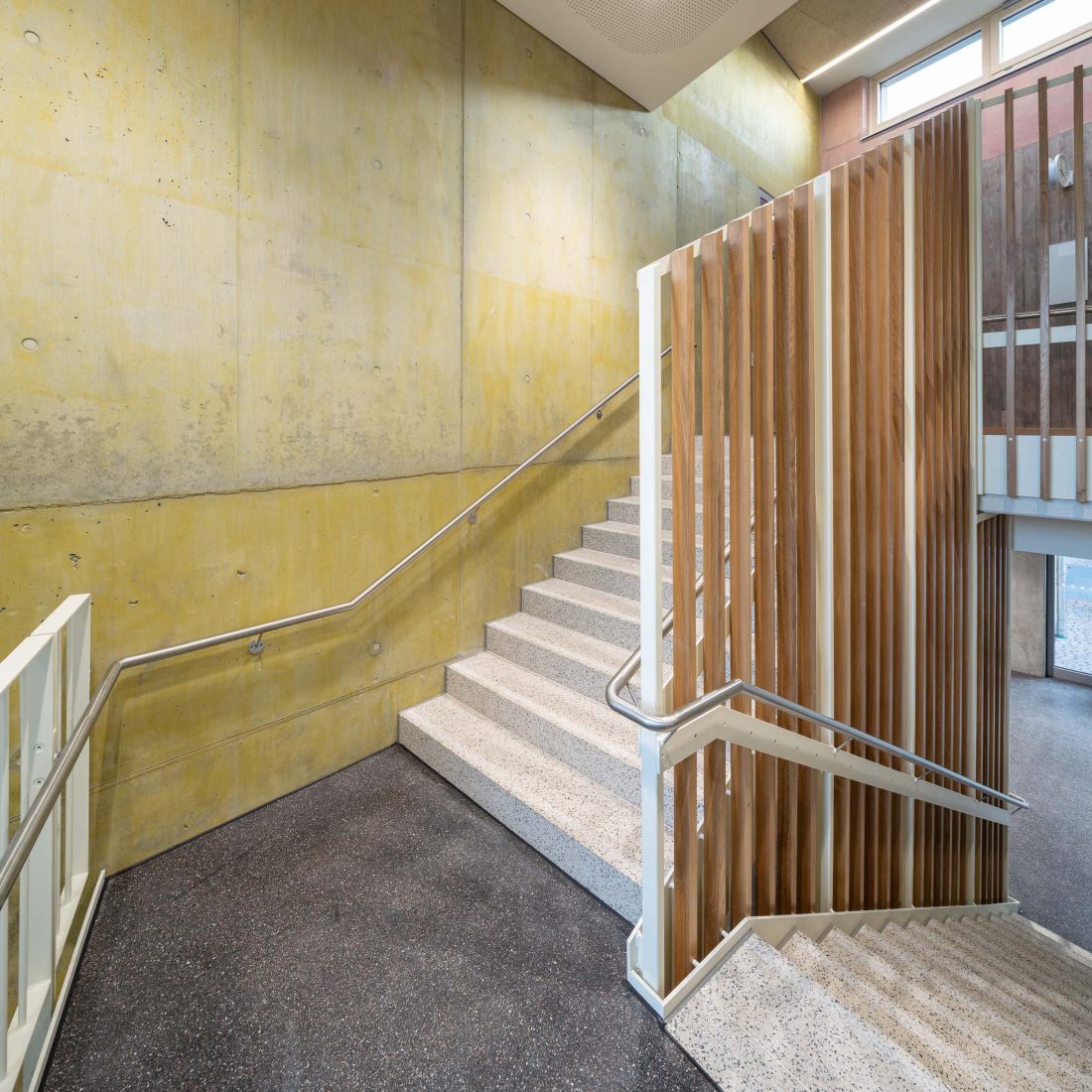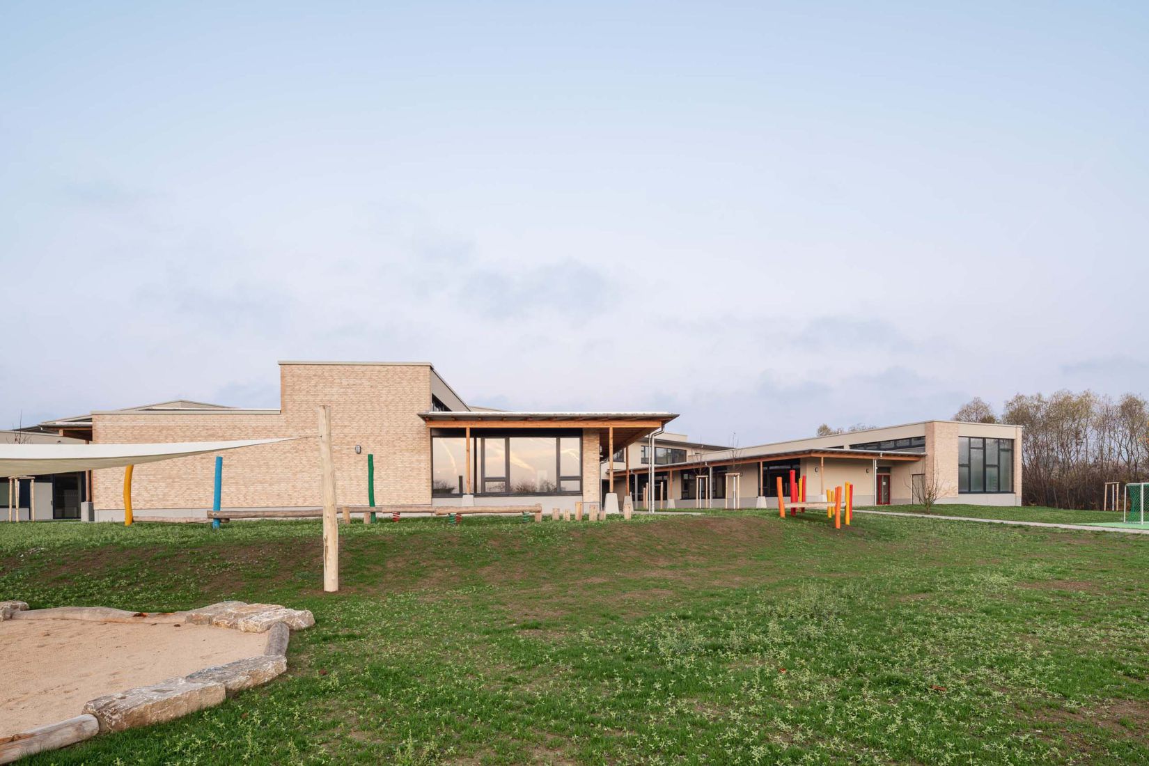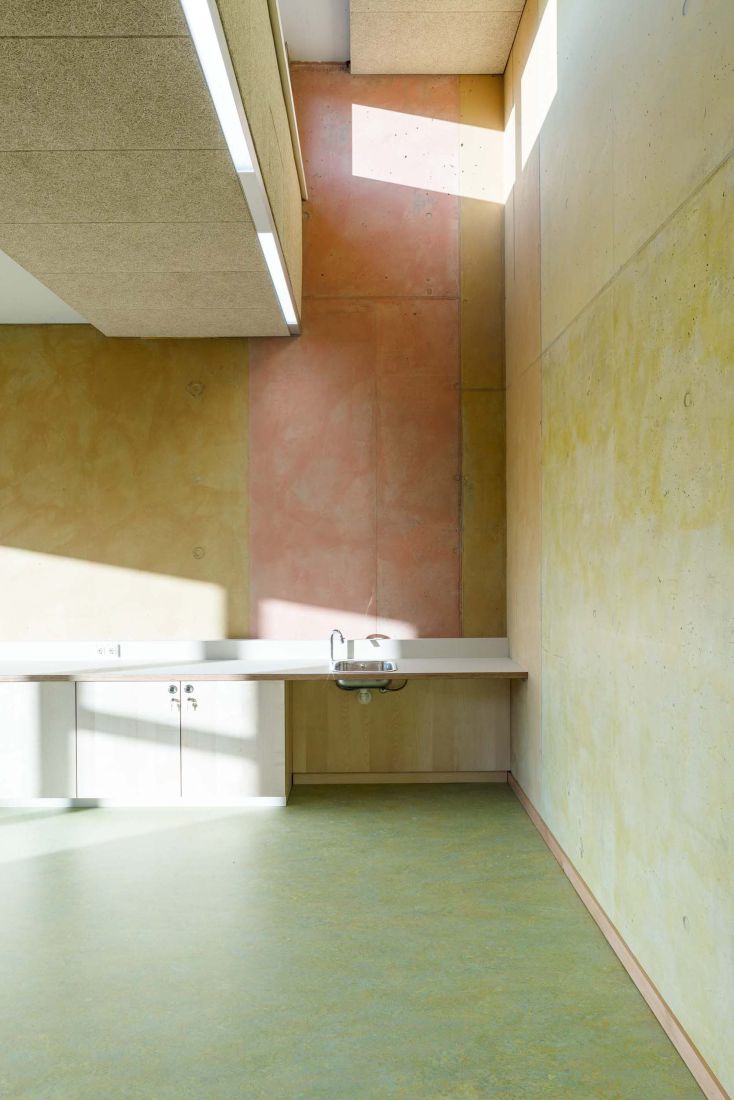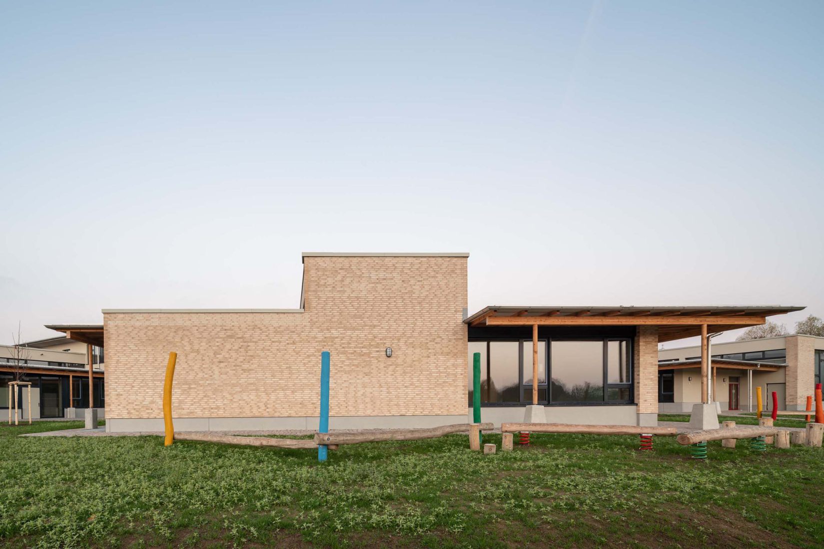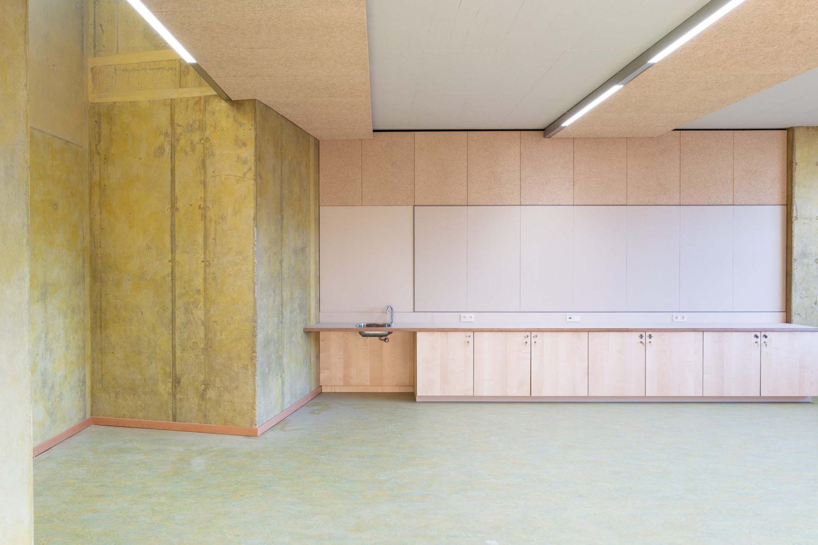 Schüler:innen verbringen in einer Ganztages-Förderschule einen überwiegenden Teil ihrer Zeit und werden wesentlich durch die gebaute Umgebung geprägt. Für uns als Architekten stellt sich somit als primäre Herausforderung nicht nur das Raumprogramm zu erfüllen, sondern einen Lebensraum für schwache, behinderte und kranke Kinder zu schaffen, der ihnen zugleich Geborgenheit, Sicherheit und Heimat bietet und ihre emotionale und motorische Entwicklung fördert.