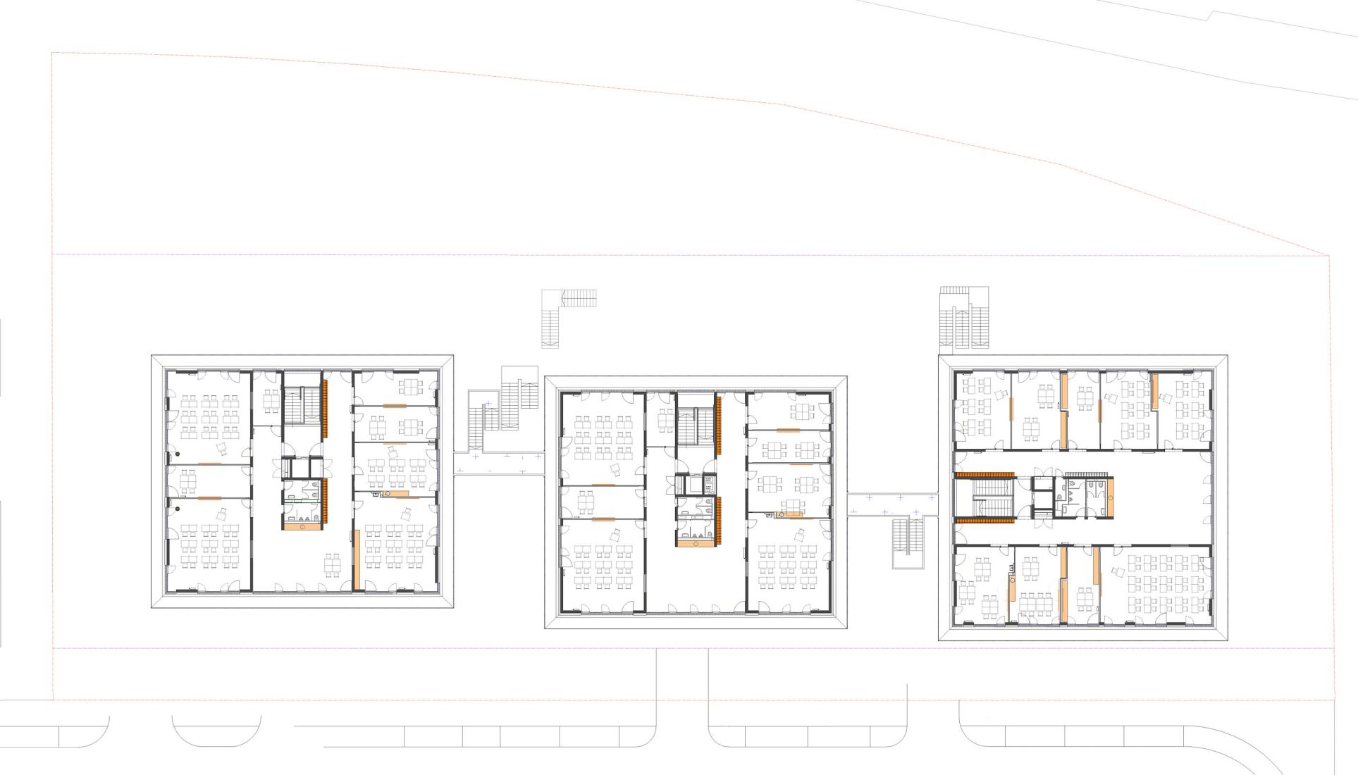 Zwischen den Lernhäusern entstehen Dachterrassen also auch ein direkter Außenbereich in den Obergeschossen.