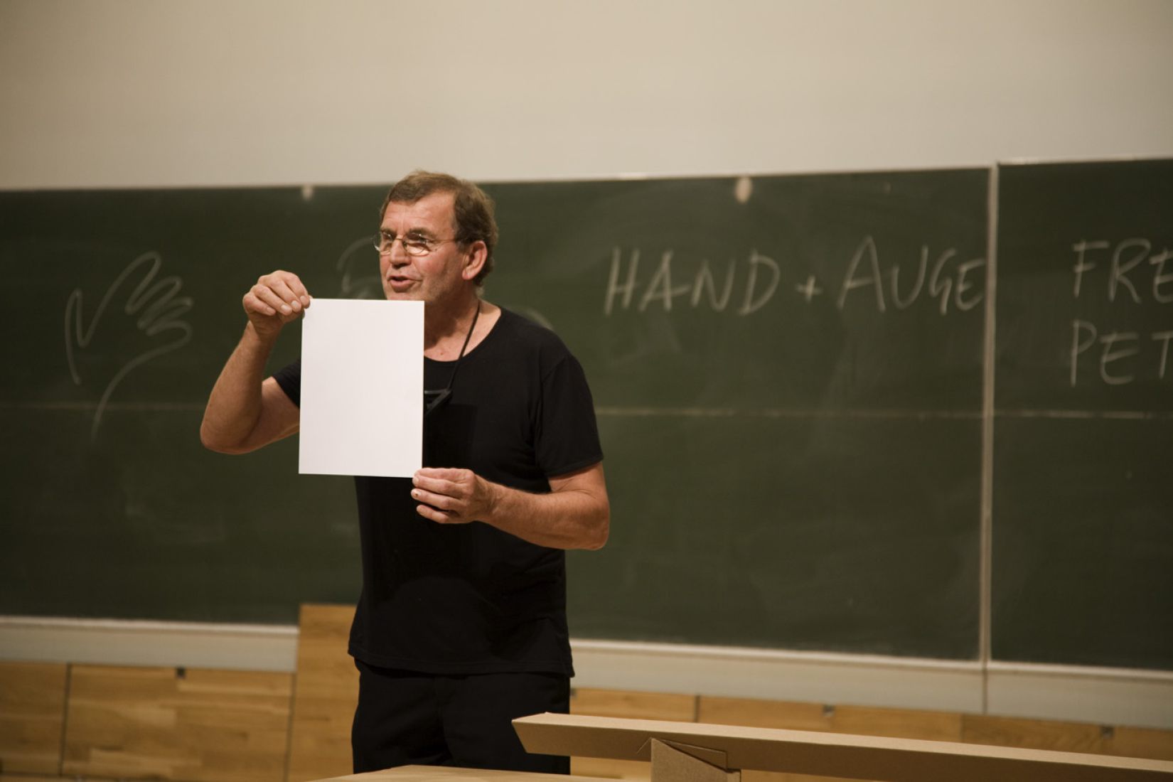 „Hand und Auge“ heißt das Thema meiner heutigen Abschiedsvorlesung, die ich zwei Lehrern, Kollegen und Freunden widmen möchte, die mein Wirken als Architekt und Lehrer wesentlich beeinflusst haben, nämlich Frei Otto und Peter Sulzer.