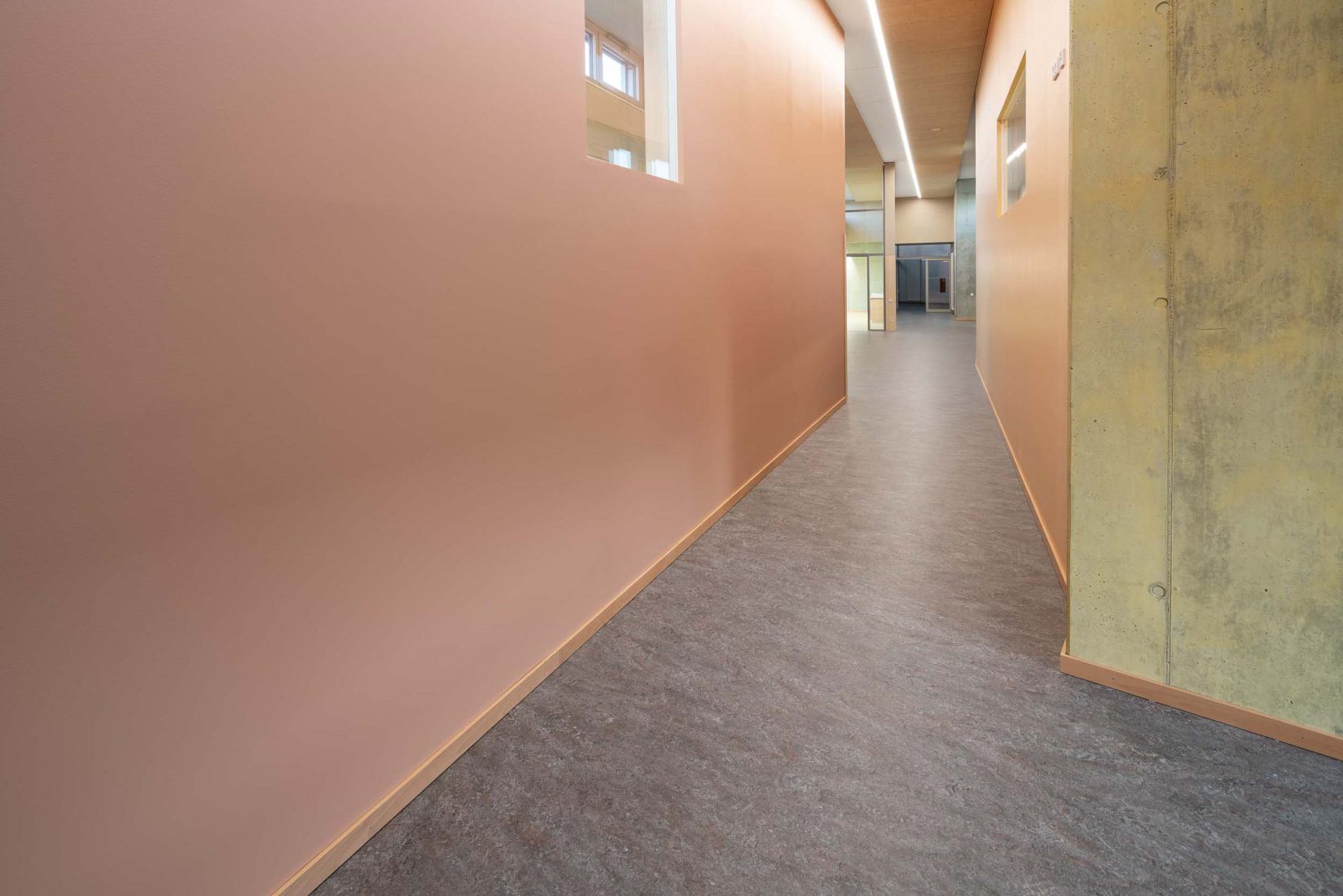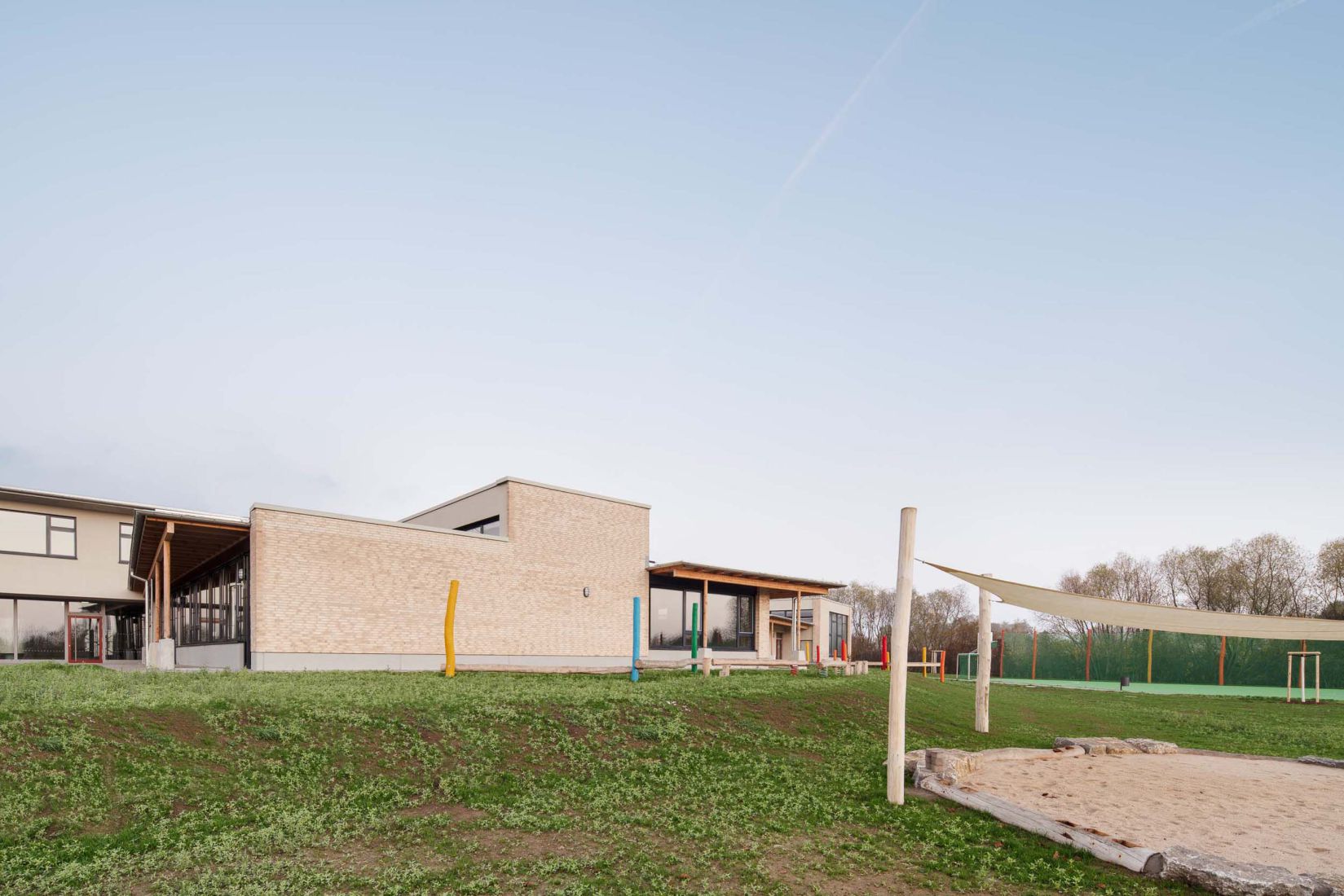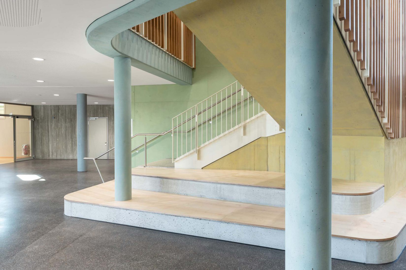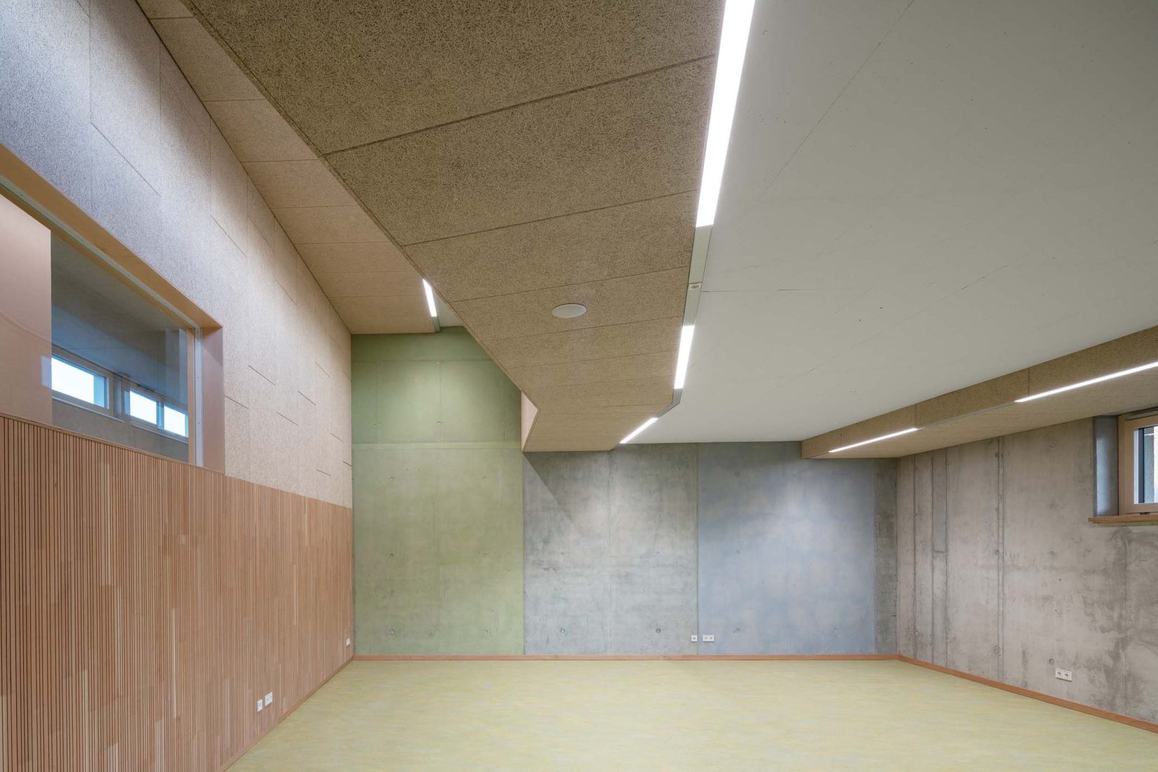 Schüler:innen verbringen in einer Ganztages-Förderschule einen überwiegenden Teil ihrer Zeit und werden wesentlich durch die gebaute Umgebung geprägt. Für uns als Architekten stellt sich somit als primäre Herausforderung nicht nur das Raumprogramm zu erfüllen, sondern einen Lebensraum für schwache, behinderte und kranke Kinder zu schaffen, der ihnen zugleich Geborgenheit, Sicherheit und Heimat bietet und ihre emotionale und motorische Entwicklung fördert.